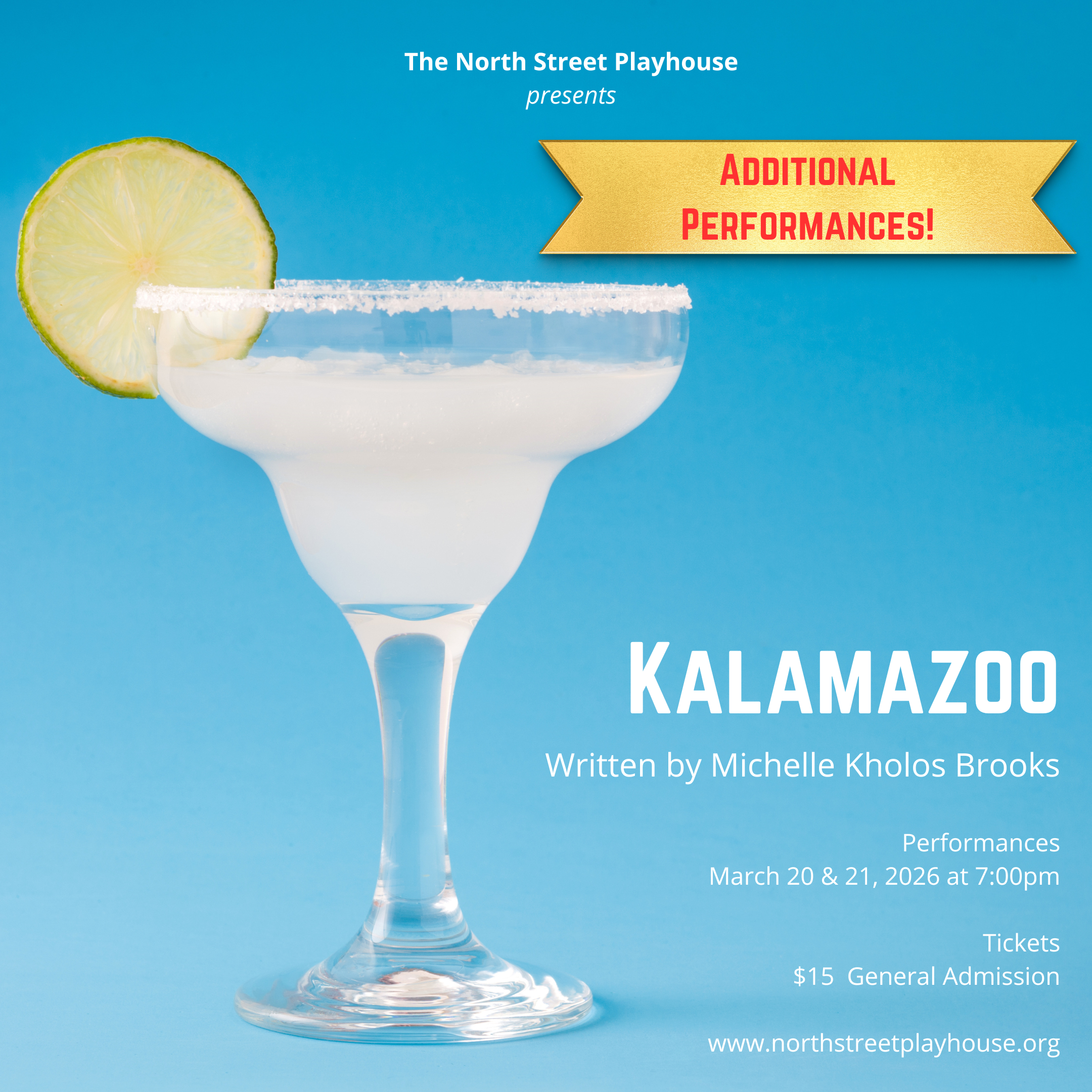 Due to popular demand, we are excited to offer TWO additional performances of Kalamazoo at North Street Playhouse!